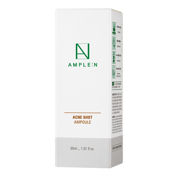 Acne Shot Ampoule با ترکیباتی هدفمند مثل سنتلا آسیاتیکا، روغن درخت چای، BHA و زینک برای آرامسازی، کنترل چربی و بهبود پوستهای جوشدار طراحی شده.