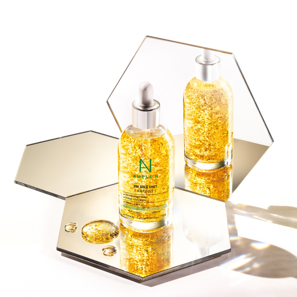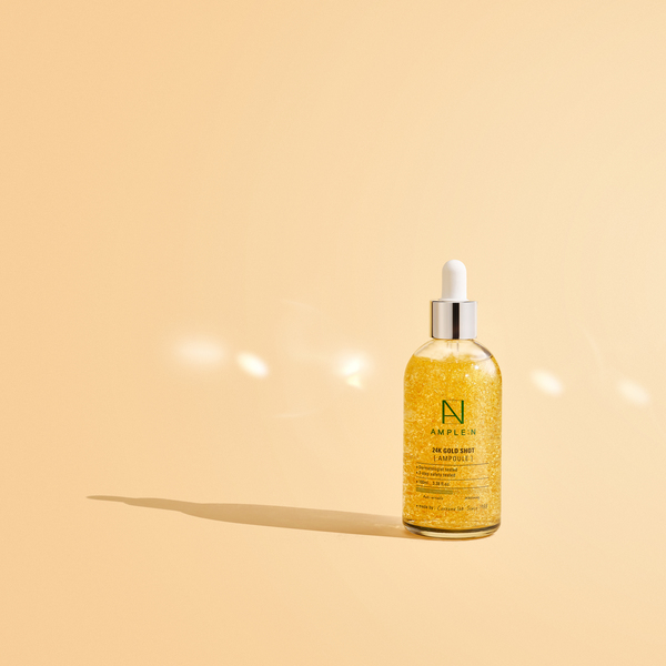 AMPLE:N 24K Gold Shot Ampoule با ترکیب طلای خالص ۲۴ عیار و آنتیاکسیدانهای قوی، برای جوانسازی، روشنکردن و محافظت از پوست طراحی شده.