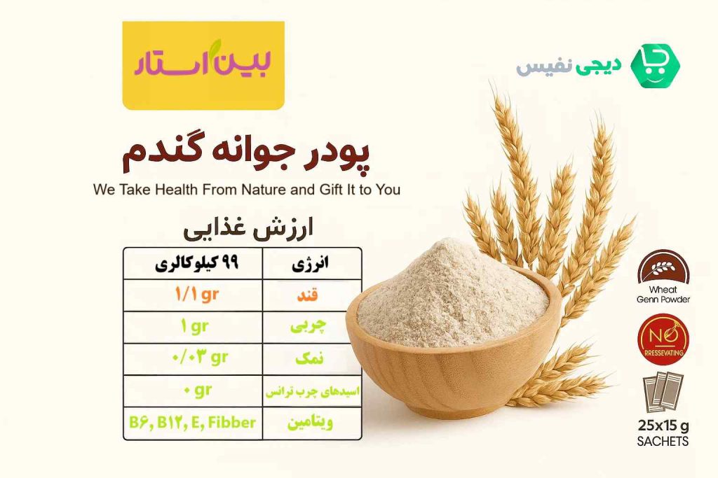 پودر جوانه گندم بین استار یک مکمل رژیم غذایی ارزشمند با بسیاری از خصوصیات سلامتی و زیبایی است. استفاده منظم می تواند به تقویت سیستم ایمنی بدن ، حفظ سلامت قلب و دستگاه گوارش، افزایش انرژی و بهبود سلامت پوست و مو کمک کند. پودر جوانه گندم بین استار با کیفیت بالا و طعم دلپذیر گزینه ای ایده آل برای بهره مندی از همه این خصوصیات است شما با وارد کردن این مواد مغذی در رژیم غذایی خود ، گام مهمی برای حفظ سلامتی و نشاط برداشته اید.